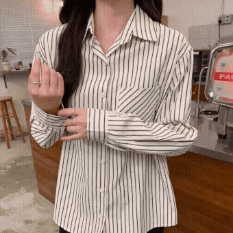 레트로 스트라이프 셔츠 자켓 캐주얼 루즈핏 긴팔 탑