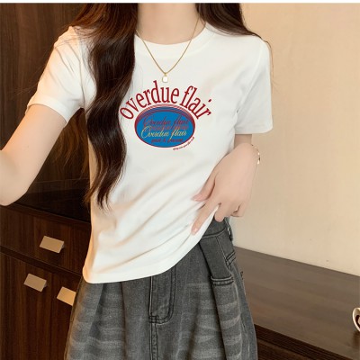 티셔츠 여성 반팔 여름 새 스타일 전면 어깨 프린트 캐주얼 및 다목적 슬림 바디 스타일