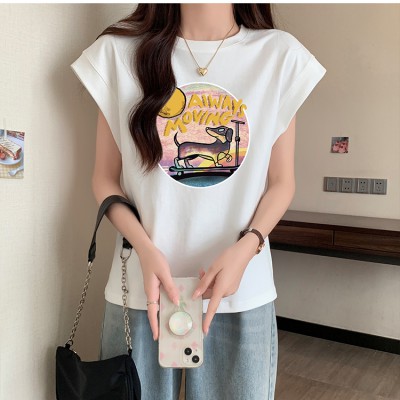 아메리칸 그레이 만화 소매 티셔츠 여름 디자인, 외부 마모 조끼 느슨한 탑