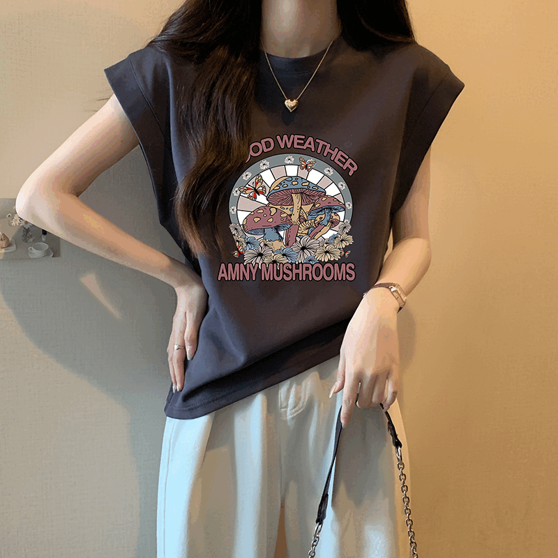 화이트 편지 직선 어깨 소매 레벨 리버 티셔츠 여름 디자인 미국인 미국 작은 느슨한 짧은 슬리브 탑