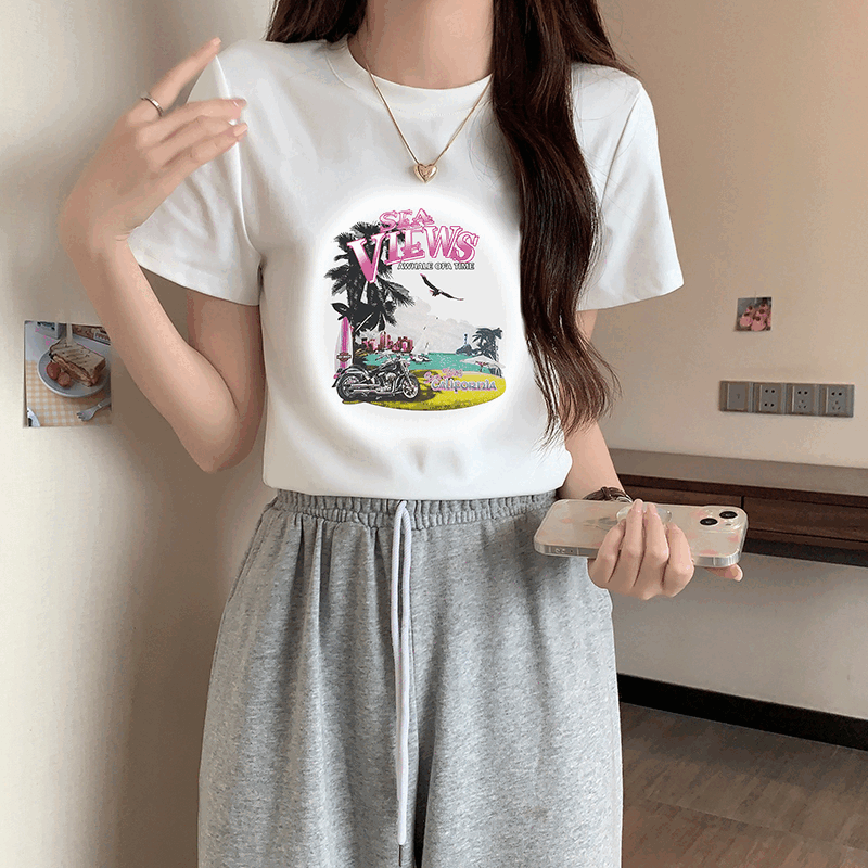 인쇄 여름 디자인에서 여성을위한 전면 어깨 단락 티셔츠, 작은 짧은 상위 트렌디