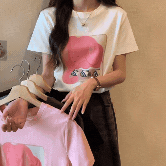 핑크 인쇄 여름에 여성을위한 핑크 프린트 짧은 슬리브 티셔츠