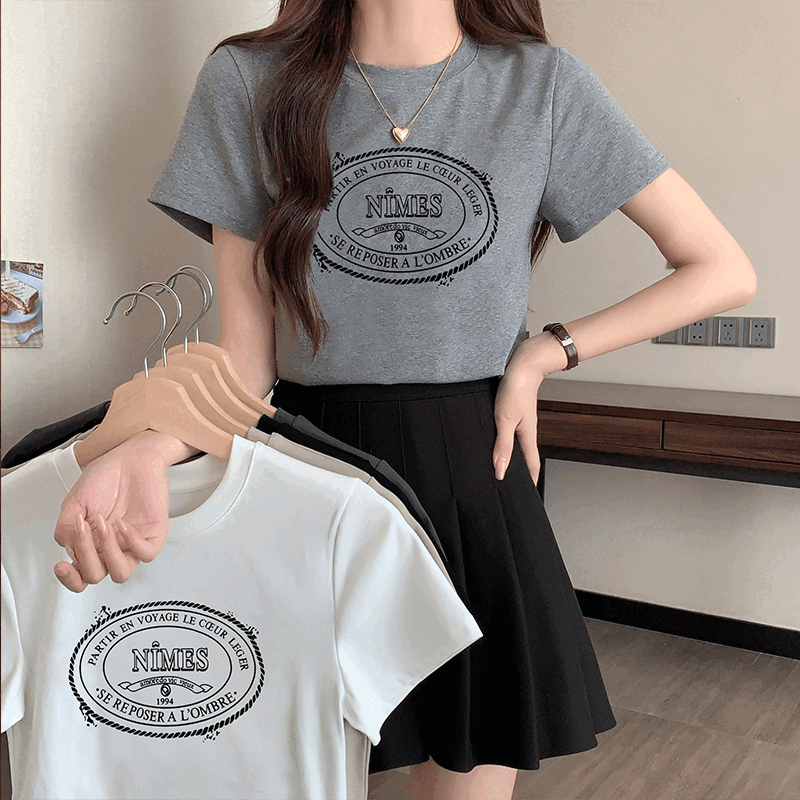 여름 디자인에서 여성을위한 프린트 어깨 짧은 슬리브 티셔츠 여름 디자인 티셔츠 작은 짧은 탑