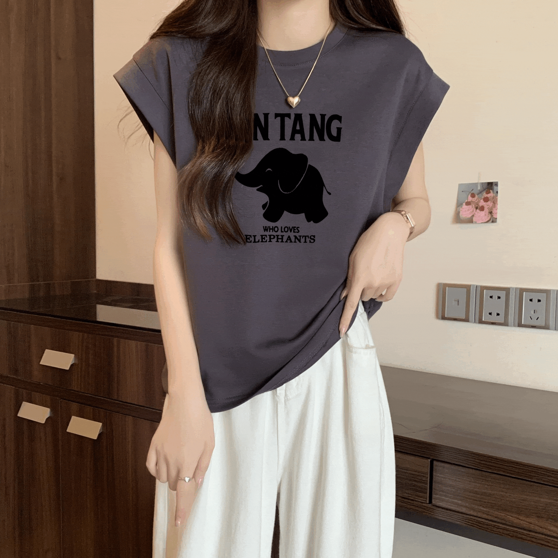 여자 조끼 라운드 넥 티셔츠 인쇄 여름 고급 핫 걸 슬림하고 느슨한 소매 탑