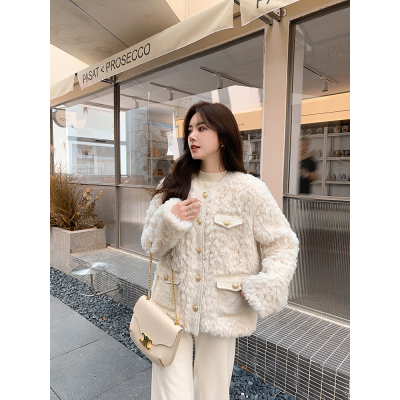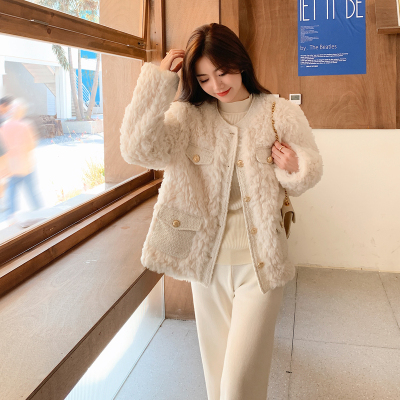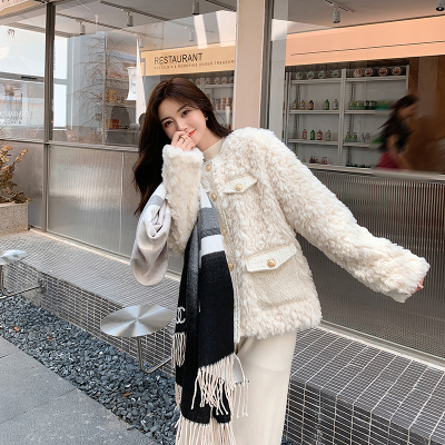 새로운 가을 겨울철 고급 개인 작은 센스 샤넬 스타일 어린 양 플리스 화이트 모피 여성 코트