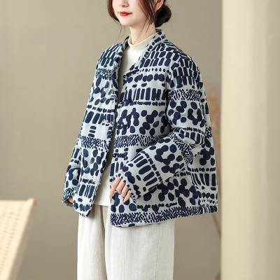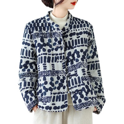 천 젠 플러스 면 두꺼운 면 옷 여성 코트 겨울 한푸 면 린넨 목화 진딧물 맨위