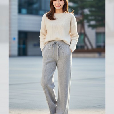 [당일발송] 프린지 니트 롱 밴딩 팬츠