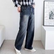 베이직 남자 청바지 와이드 바지 남성 연청 데님 팬츠
