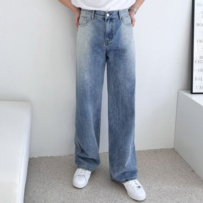 베이직 남자 청바지 와이드 바지 남성 연청 데님 팬츠