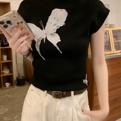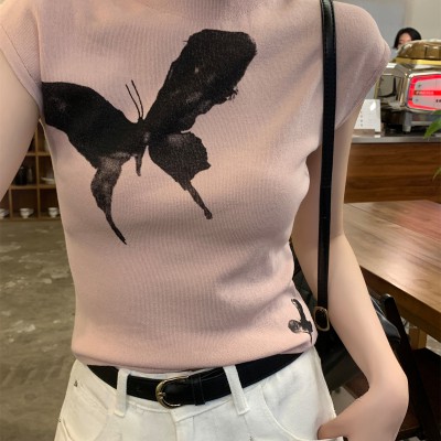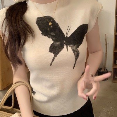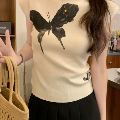 여름 한국 스타일 슬림 정사각형 칼라 버튼 여성을위한 다목적 i 자형 슬림면 조끼 탑